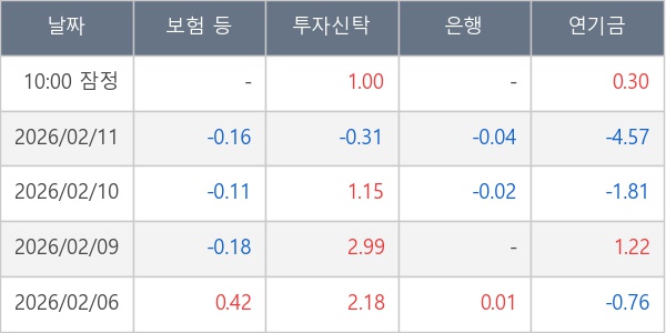 [표] 주요 기관별 순매매량 (단위 만주)
