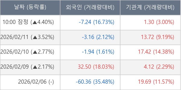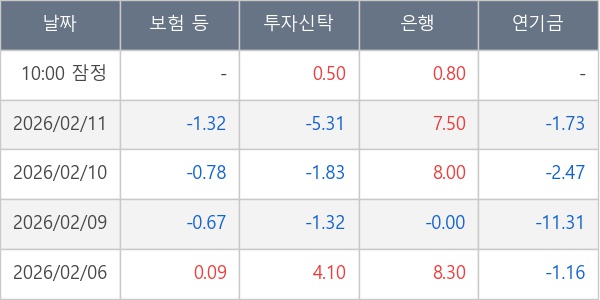 [표] 주요 기관별 순매매량 (단위 만주)