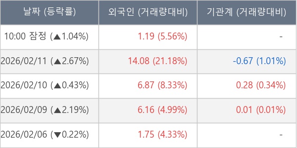 [표] 외국인ㆍ기관 순매매량 (단위 만주)