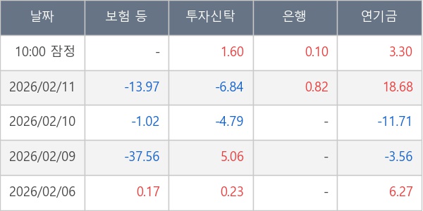 [표] 주요 기관별 순매매량 (단위 만주)