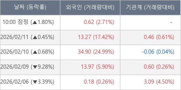 [표] 외국인ㆍ기관 순매매량 (단위 만주)
