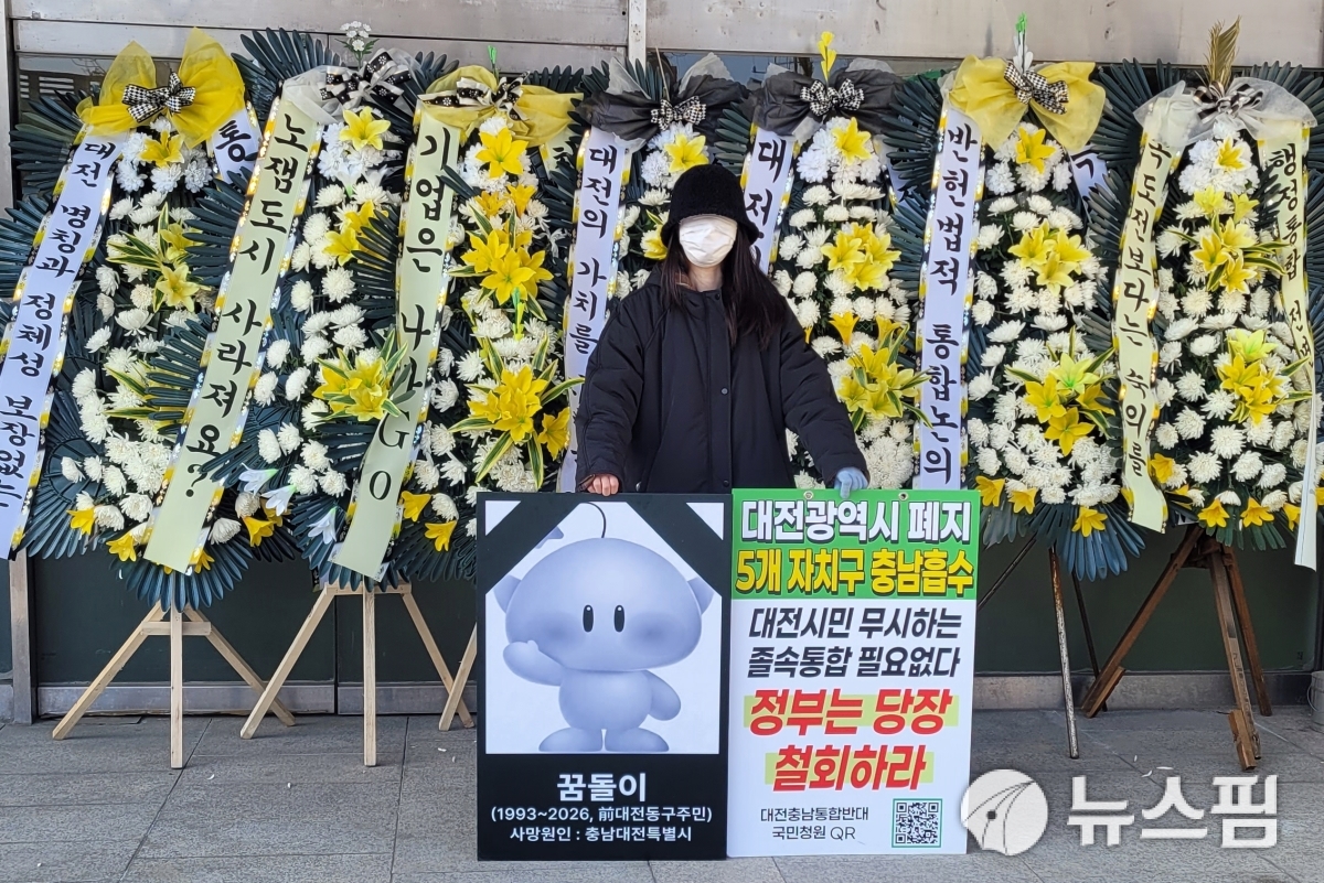 앞서 이들은 시청 앞 1인 시위와 대전시의회 앞에 근조화환을 설치하는 등 통합 반대 퍼포먼스를 진행한 바 있다.