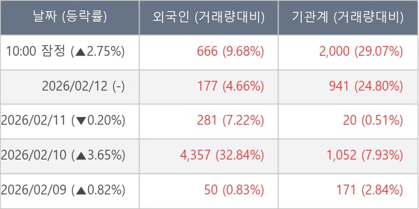[표] 주요 기관별 순매매량 (단위 주)