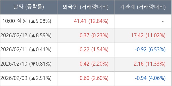[서울=뉴스핌] 로보뉴스 = 13일 10시 15분 현재 폴라리스우노(114630)는 전일 대비 5.08% (현재가 558원) 상승했고, 외국인이 최근 7일 연속 순매수(누적 44.83만 주, 잠정) 행진을 하고 있다.