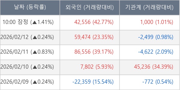 [표] 주요 기관별 순매매량 (단위 주)