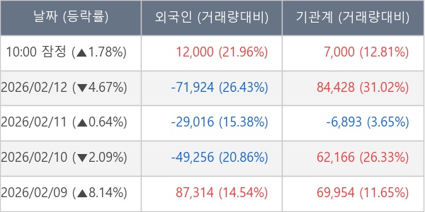 ※ 사모펀드 등 일부 기관의 순매매량은 표시되지 않음