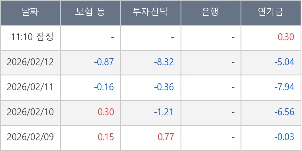 [표] 주요 기관별 순매매량 (단위 만주)
