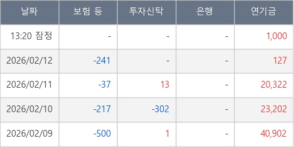 [표] 주요 기관별 순매매량 (단위 주)