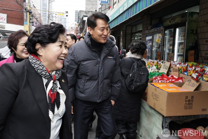 [서울=뉴스핌] 양윤모 기자 = 오세훈 서울시장이 13일 오후 설 명절을 맞아 서울 광진구 자양전통시장을 방문하고 있다. 2026.02.13 yym58@newspim.com