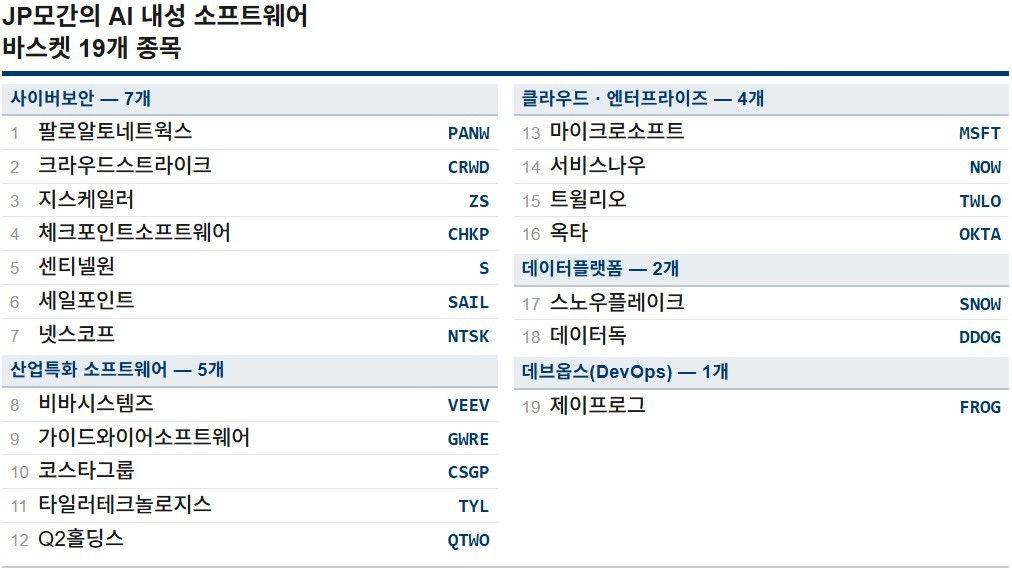 우량 소프트웨어주 매수 기회? JP모간의 AI 내성 종목 19선