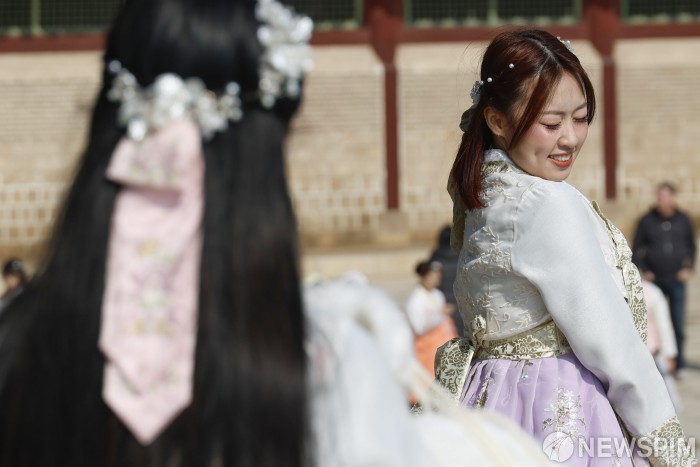 [서울=뉴스핌] 류기찬 기자 = 설 연휴를 맞아 주요 궁궐이 무료로 개방한 15일 오후 서울 종로구 경복궁을 찾은 외국인 관광객들이 기념촬영을 하고 있다. 2026.02.15 ryuchan0925@newspim.com