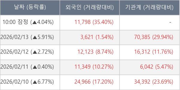 [표] 외국인ㆍ기관 순매매량 (단위 주)