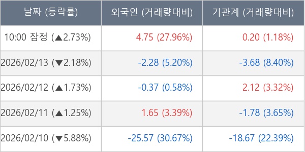 [서울=뉴스핌] 로보뉴스 = 19일 10시 15분 현재 현대로템(064350)은 외국인과 기관이 각각 4.75 만 주, 0.20 만 주 순매수(잠정) 하면서 전일 대비 2.73% (현재가 207,000원) 상승하고 있다.