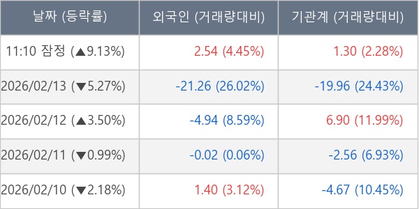 [표] 외국인ㆍ기관 순매매량 (단위 만주)