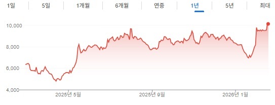 [방콕=뉴스핌] 홍우리 특파원 = 아파르 인더스트리즈(Apar Industries) 주가가 18일 장중 9% 급등하며 1만 루피(약 15만 8900원)선을 회복, 1만 416.95루피까지 오르면서 52주 최고가를 기록했다. 2025년 7월 30일에 기록했던 직전 최고가(9900루피)를 넘어서면서 2025년 1월 8일 기록한 사상 최고가(1만 1797.35루피)에 근접했다.