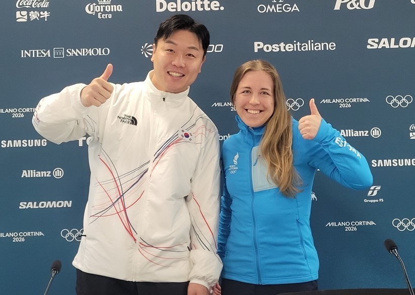 [서울=뉴스핌] 박상욱 기자 = 원윤종(오른쪽)과 함께 당선된 요한나 탈리해름. [사진=대한체육회] 2026.02.19 psoq1337@newspim.com