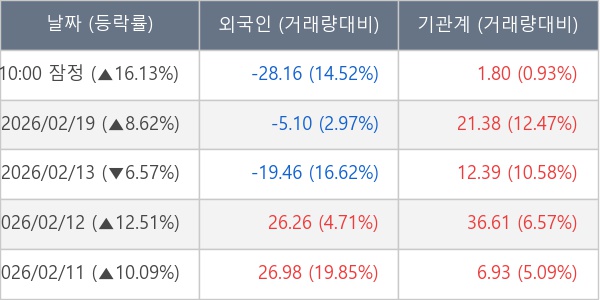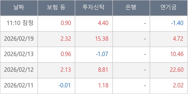 [표] 주요 기관별 순매매량 (단위 만주)