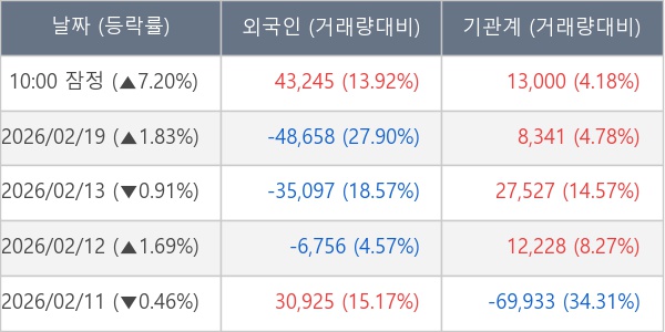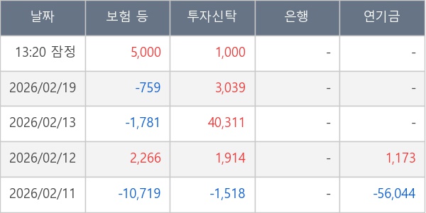 [표] 주요 기관별 순매매량 (단위 주)