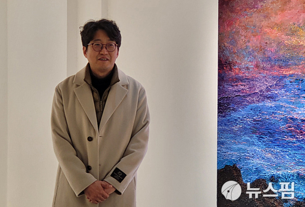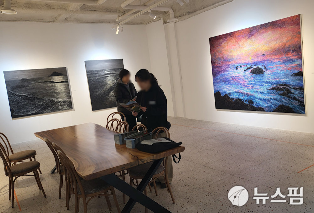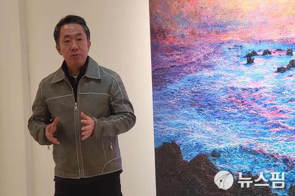 김남표 작가는 "작품을 하는 것과 전시를 하는 것에는 차이가 있다"고 운을 뗀 후 "그동안 수없이 많은 전시가 있었지만 이번 전시는 좀 특별한 느낌이 있었는데 먼저 준비 과정이 매우 따뜻하게 진행이 돼서 소중한 기억이 될 것 같다며 제 작품은 제주 애월 바다를 담은 풍경으로 우리나라가 이제 미술 애호가도 많아지면서 미술 시장이 확대돼 그림을 접할 수 있는 기회가 많아진 것 같다"고 밝혔다.