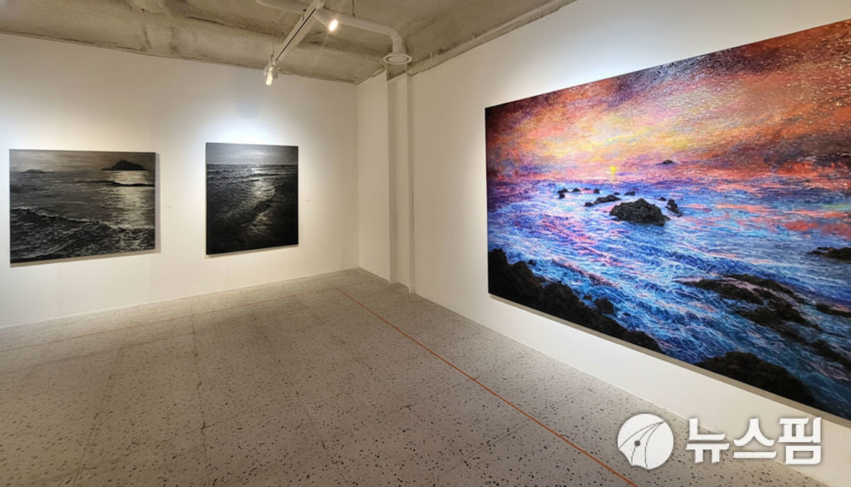 이어 "전시 장소 뒤에 황룡산이 있는데 소나무 등 숲의 풍경이 너무 아름답다. 그래서 '여기 풍경에 바다가 들어가면 참 좋겠다'라는 생각이 들어 전시를 통해 그림으로나마 함께 놓아지게 됐다"고 밝혔다.