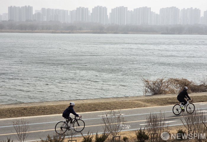 서울·경기·인천 미세먼지 주의보 발령... 뿌옇게 보이는 미사강변 일대