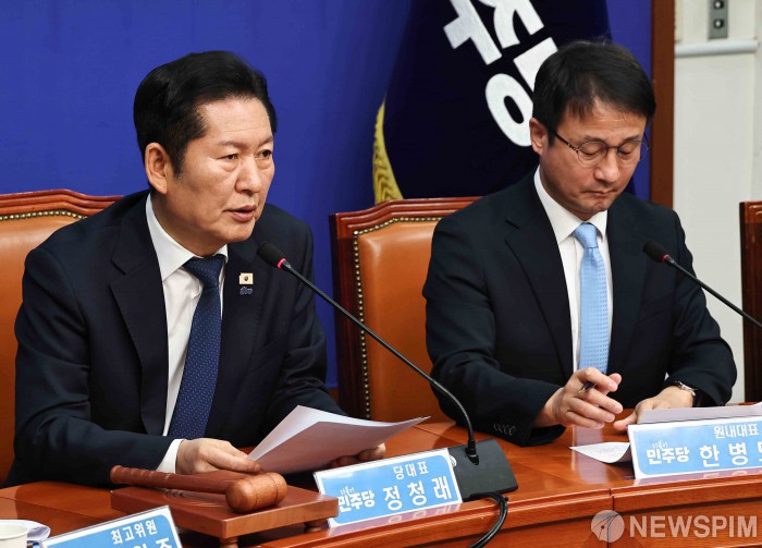[서울=뉴스핌] 윤창빈 기자 = 정청래 더불어민주당 대표가 23일 오전 서울 여의도 국회에서 열린 최고위원회의에서 모두발언을 하고 있다. 2026.02.23 pangbin@newspim.com