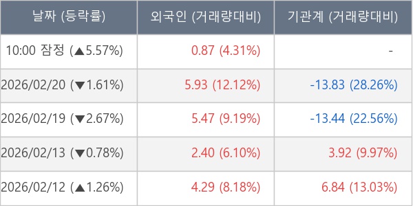 [표] 외국인ㆍ기관 순매매량 (단위 만주)