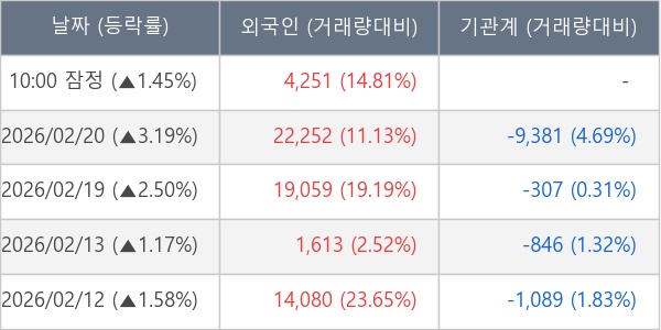 [표] 외국인ㆍ기관 순매매량 (단위 주)