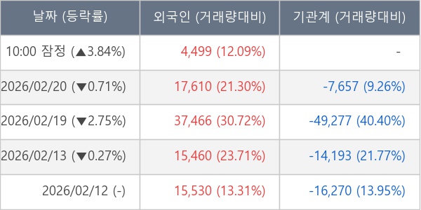 [표] 외국인ㆍ기관 순매매량 (단위 주)