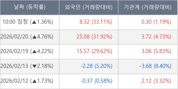 [장중수급포착] 현대로템, 외국인/기관 동시 순매수… 주가 +1.36%