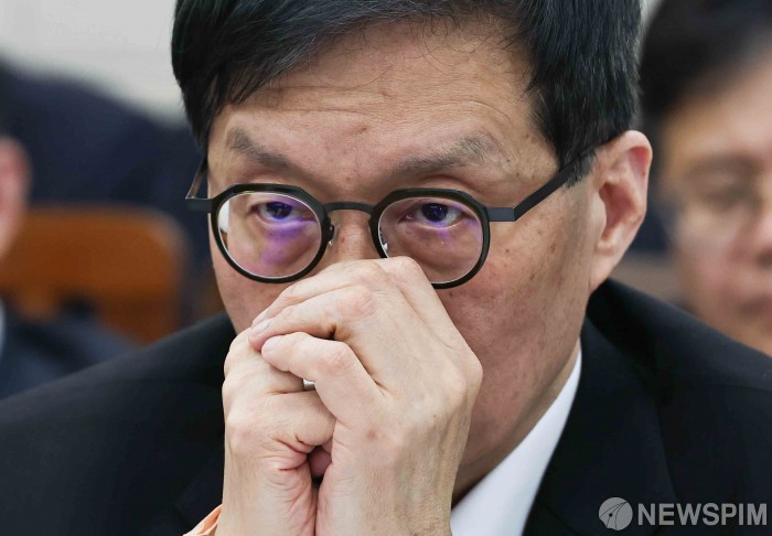 [서울=뉴스핌] 윤창빈 기자 = 이창용 한국은행 총재가 23일 오후 서울 여의도 국회에서 열린 재정경제기획위원회 전체회의에서 의원 질의를 듣고 있다. 2026.02.23 pangbin@newspim.com