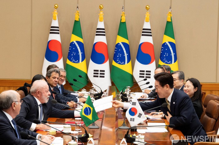 [서울=로이터뉴스핌] 이재명 대통령이 23일 오전 서울 청와대에서 루이스 이나시우 룰라 다 시우바 브라질 대통령과 정상회담을 하고 있다. 2026.02.23 photo@newspim.com
