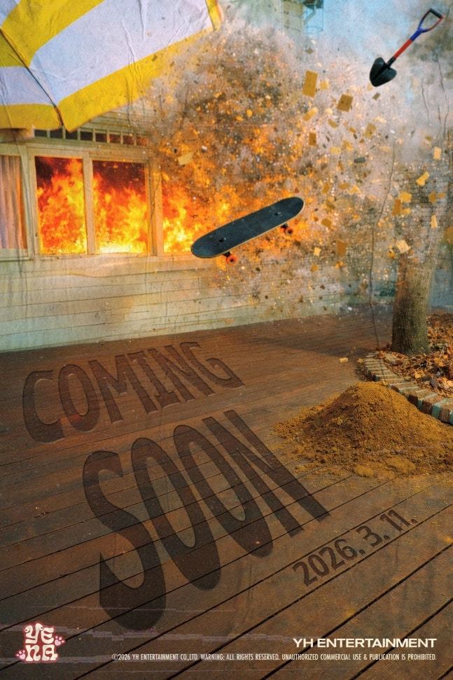 최예나는 23일 공식 SNS를 통해 커밍순 이미지를 공개하며 내달 11일 컴백을 공식화했다. 이미지에는 화염에 휩싸인 건물과 재로 사라져 가는 나무가 등장해 강렬한 분위기를 자아냈다. 그 위로 스케이트보드와 삽 등이 공중에 날아가는 듯한 요소가 더해져 폭발적인 긴장감과 극적인 장면을 완성했다.