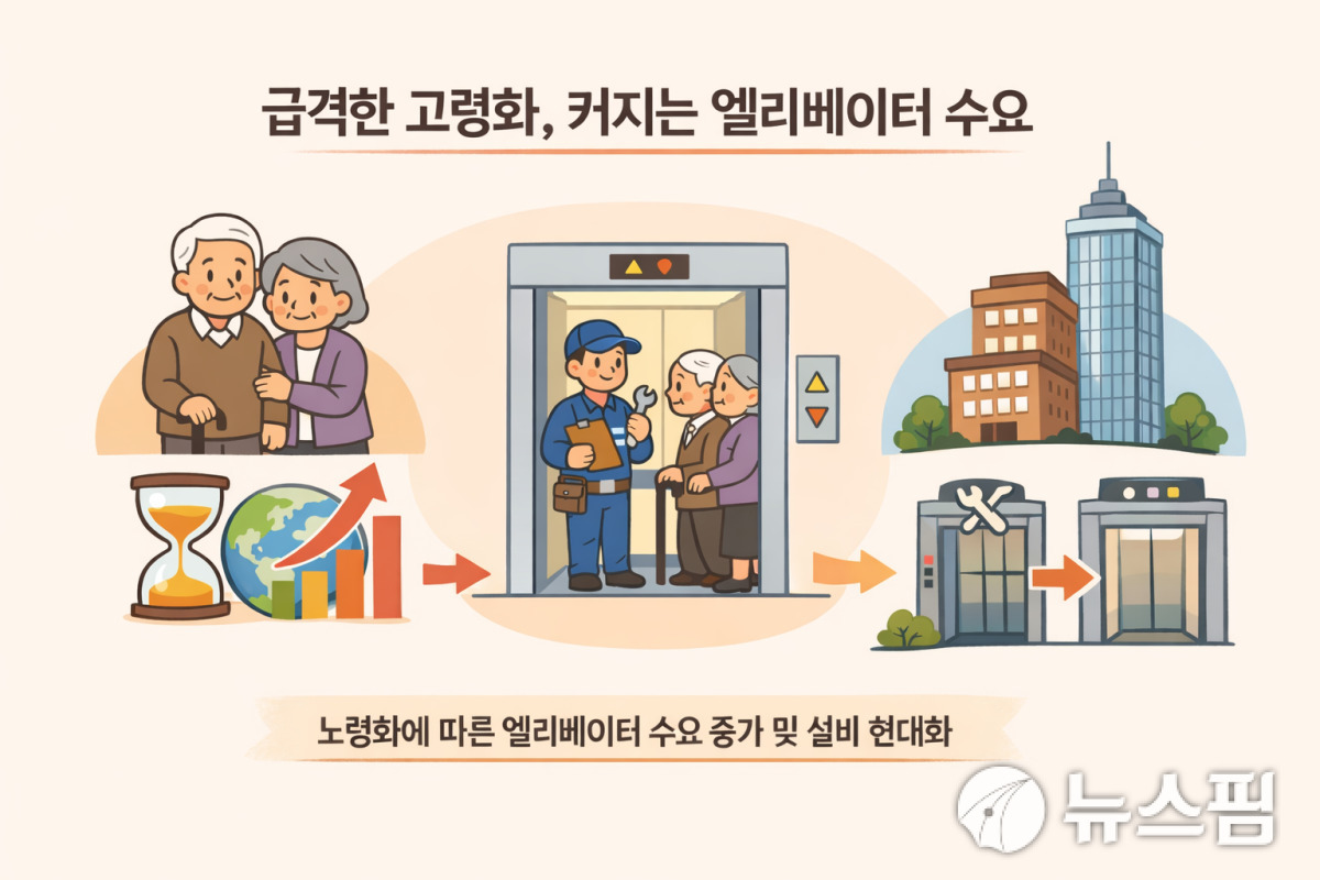계단을 오르내리기 어려운 노인들이 크게 늘면 필연적으로 엘리베이터 수요가 급증할 수 밖에 없다는 것이다.