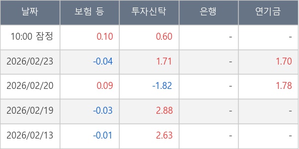 [표] 주요 기관별 순매매량 (단위 만주)