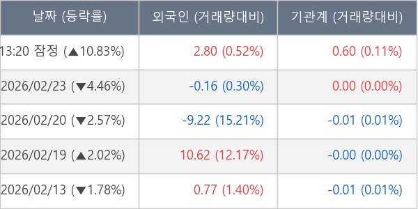 [서울=뉴스핌] 로보뉴스 = 24일 13시 30분 현재 한농화성(011500)은 외국인과 기관이 각각 2.80 만 주, 0.60 만 주 순매수(잠정) 하면서 전일 대비 10.83% (현재가 26,100원) 상승하고 있다.