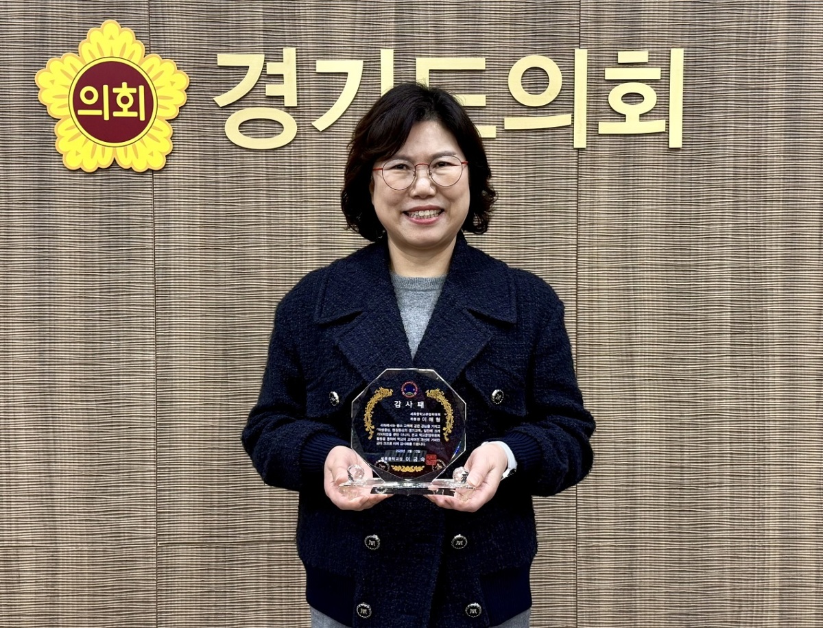 경기도의회 교육행정위원회 이애형 위원장(국민의힘, 수원 세류1·2·3동 및 권선1동)은 수원 세류중학교로부터 학교 교육여건 개선에 기여한 공로를 인정받아 감사패를 수상했다. [사진=경기도의회]