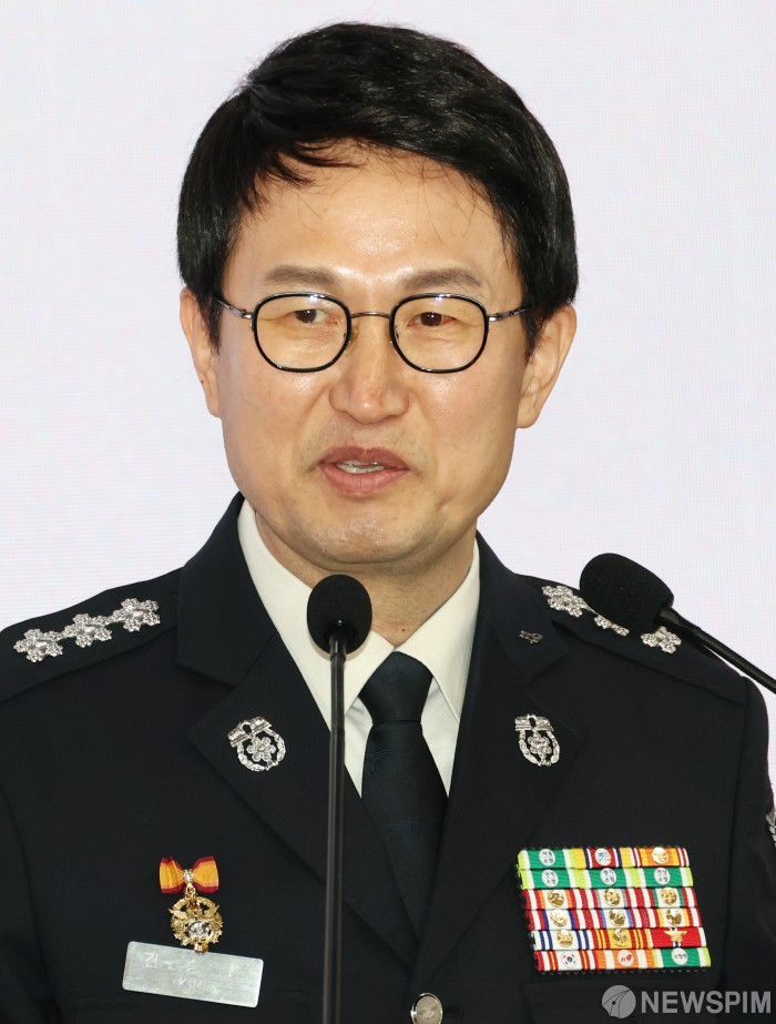 [남양주=뉴스핌] 김현우 기자 = 김승룡 소방청장 직무대행이 24일 오후 경기도 남양주 수도권119특수구조대에서 열린 현대자동차그룹-소방청 무인소방로봇 기증식에서 인사말을 하고 있다. 2026.02.24 khwphoto@newspim.com
