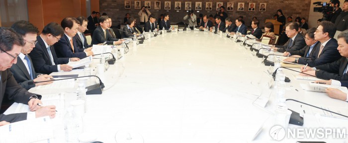 [서울=뉴스핌] 류기찬 기자 = 25일 오전 서울 중구 대한상공회의소 챔버라운지에서 ‘녹색전환(GX) 지원을 위한 제 4차 생산적금융 대전환 회의’가 열리고 있다. 2026.02.25 ryuchan0925@newspim.com