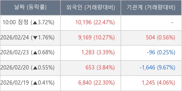 [표] 외국인ㆍ기관 순매매량 (단위 주)