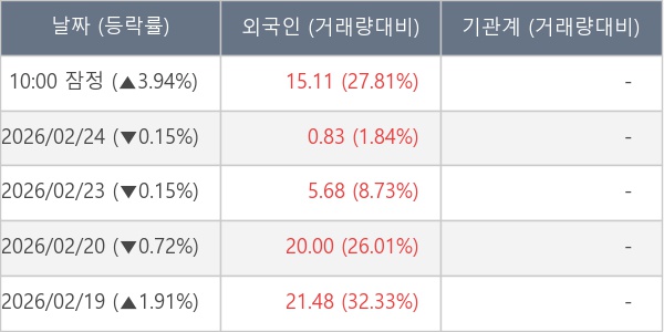 [표] 외국인ㆍ기관 순매매량 (단위 만주)