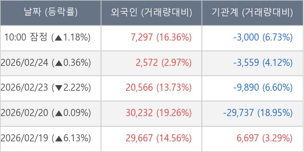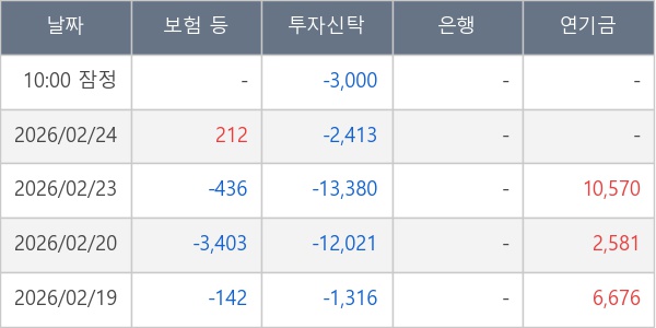 [표] 주요 기관별 순매매량 (단위 주)