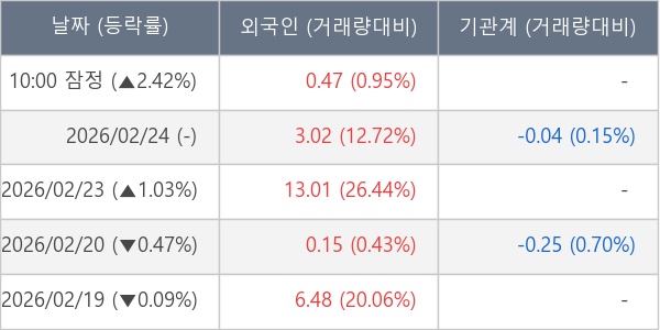 [표] 외국인ㆍ기관 순매매량 (단위 만주)