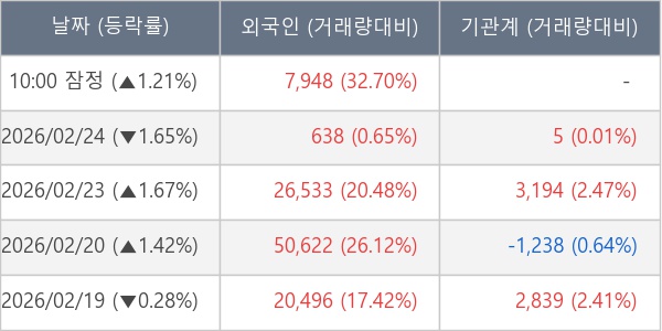 [표] 외국인ㆍ기관 순매매량 (단위 주)
