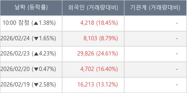[표] 외국인ㆍ기관 순매매량 (단위 주)