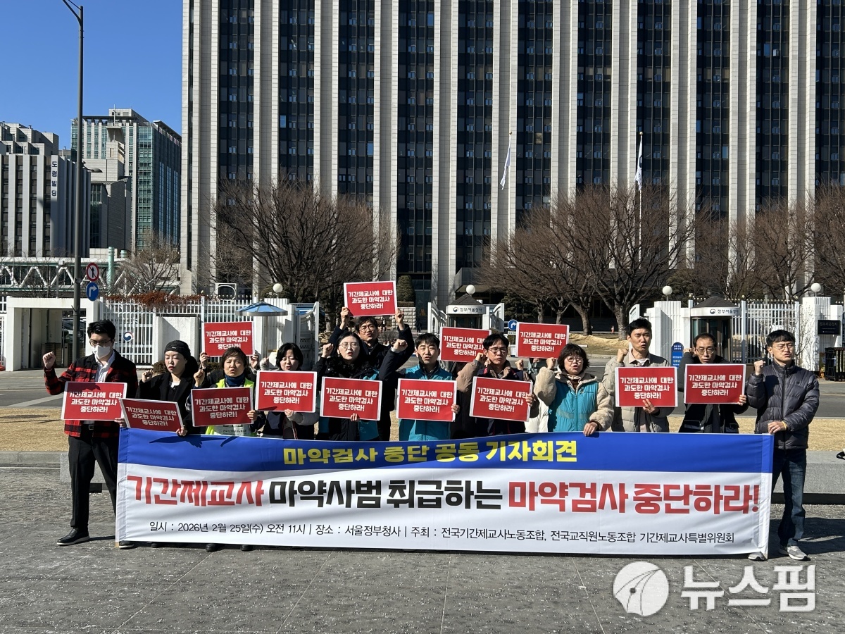 [서울=뉴스핌] 황혜영 기자 = 전국교직원노동조합(전교조)과 전국기간제교사노동조합은 25일 기간제교사에게만 매년 반복적으로 마약검사를 요구하는 현 제도가 "동일 업무를 수행하는 교사를 고용 형태만으로 차별하는 구조적 인권침해"라며 교육부와 각 시·도교육청, 국회를 향해 제도 전면 재검토를 요구했다.