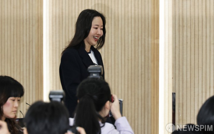 [서울=뉴스핌] 양윤모 기자= 민희진 오케이 레코즈 대표가 25일 오후 서울 종로구 관철동 교원 챌린지홀에서 하이브와의 "255억원을 내려놓는대신 현재 진행중인 모든 소송과 분쟁을 중단하라"는 기자회견을 위해 입장하고 있다. 서울중앙지법은 지난 12일 민 대표 등 3명이 하이브를 상대로 제기한 풋옵션 행사에 따른 주식매매대금 청구 소송을 인용하고, 하이브가 민 전 대표에게 255억 원을 지급하라고 명령했으며 하이브는 항소했다. 2026.02.25 yym58@newspim.com