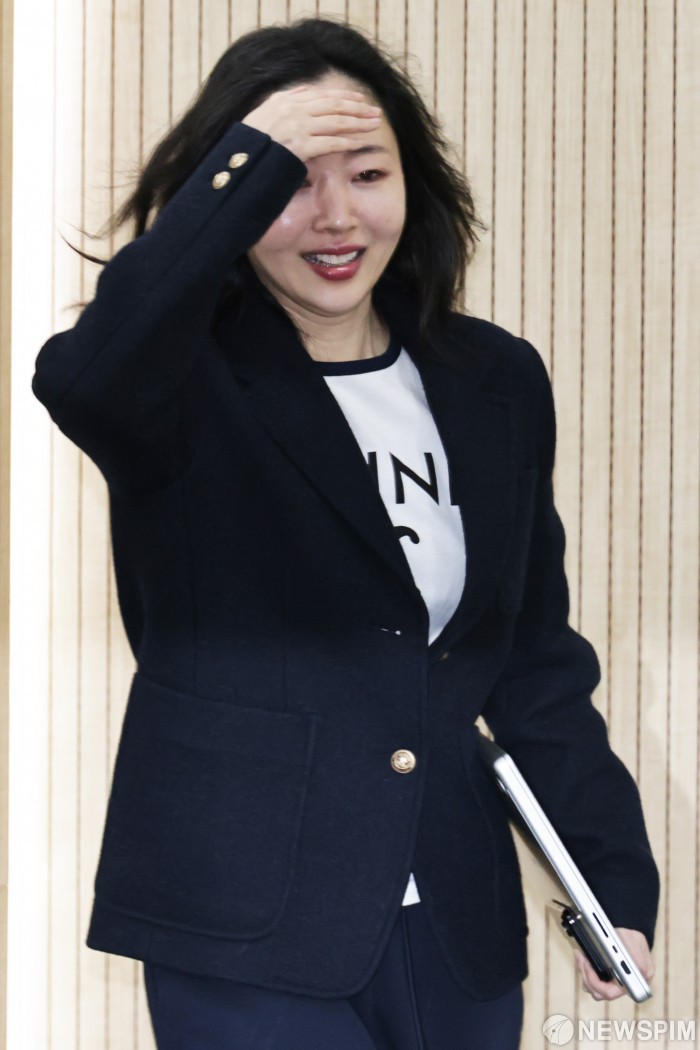 [서울=뉴스핌] 양윤모 기자= 민희진 오케이 레코즈 대표가 25일 오후 서울 종로구 관철동 교원 챌린지홀에서 하이브와의 "255억원을 내려놓는대신 현재 진행중인 모든 소송과 분쟁을 중단하라"는 기자회견을 위해 입장하고 있다. 서울중앙지법은 지난 12일 민 대표 등 3명이 하이브를 상대로 제기한 풋옵션 행사에 따른 주식매매대금 청구 소송을 인용하고, 하이브가 민 전 대표에게 255억 원을 지급하라고 명령했으며 하이브는 항소했다. 2026.02.25 yym58@newspim.com