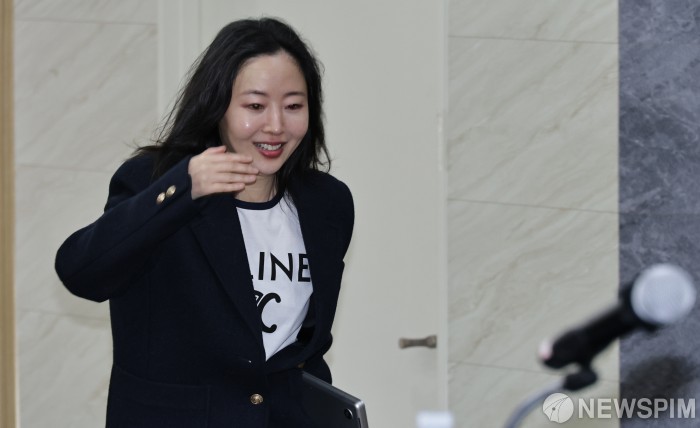 [서울=뉴스핌] 양윤모 기자= 민희진 오케이 레코즈 대표가 25일 오후 서울 종로구 관철동 교원 챌린지홀에서 하이브와의 "255억원을 내려놓는대신 현재 진행중인 모든 소송과 분쟁을 중단하라"는 기자회견을 하기위해 입장하고 있다. 서울중앙지법은 지난 12일 민 대표 등 3명이 하이브를 상대로 제기한 풋옵션 행사에 따른 주식매매대금 청구 소송을 인용하고, 하이브가 민 전 대표에게 255억 원을 지급하라고 명령했으며 하이브는 항소했다. 2026.02.25 yym58@newspim.com