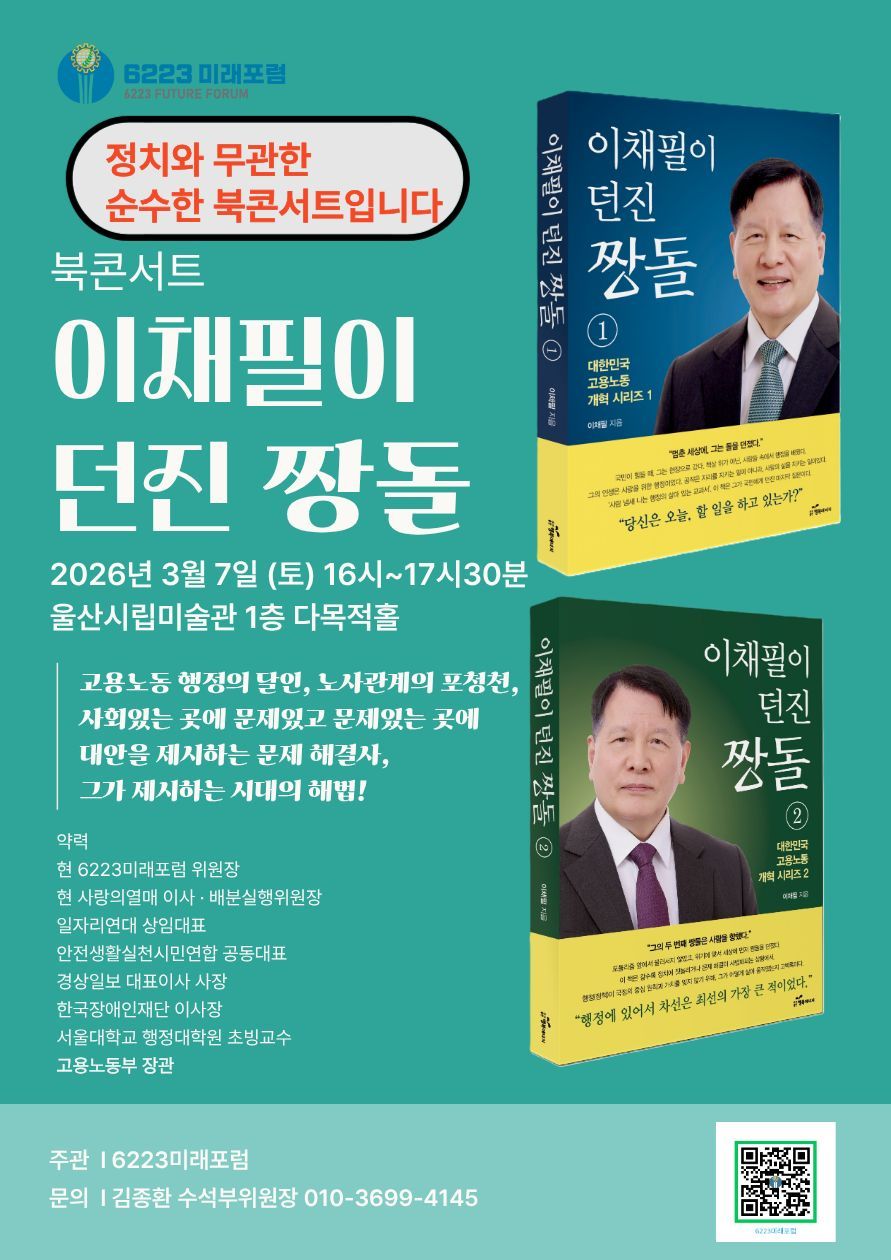 이는 저자가 순수하게 정책적 대안과 삶의 궤적을 나누고자 하는 의지가 반영된 것으로 풀이된다. 대한민국 산업의 심장이자 노사관계의 역동성이 가장 큰 도시인 울산에서 열리는 이번 북콘서트는 고용노동 행정의 달인이 전하는 생생한 현장 목소리를 직접 듣고자 하는 시민들에게 더없이 소중한 기회가 될 것으로 보인다.